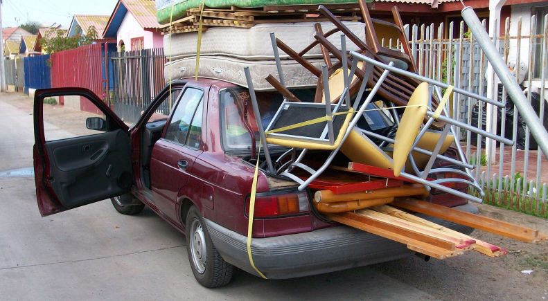 - перевозка мебели — на багажнике на крыше автомобиля или с открытой крышкой/дверью багажного отделения;