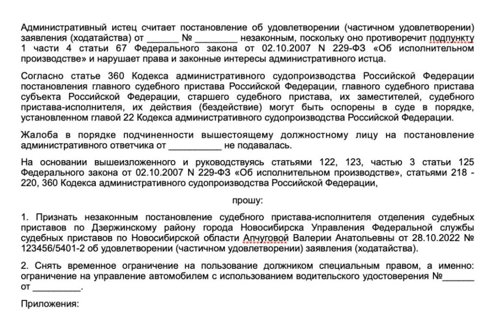 Если любая из перечисленных причин была проигнорирована, это повод подать жалобу вышестоящему судебному приставу либо в суд и требовать признания действий пристава незаконными. В обоих случаях сделать это нужно в течение 10 дней с момента получения извещения об открытии исполнительного производства.